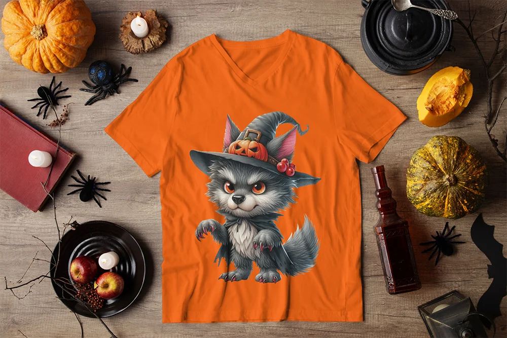 Bügelbild süßer Werwolf mit Hexenhut – gruselig-niedliches Halloween-Motiv mit Kürbis-Details Gruselig und trotzdem charmant. Dieses Bügelbild zeigt einen kleinen Werwolf mit dichtem, grauschwarzem Fell und leuchtend orangeroten Augen. Aufrecht stehend präsentiert er seine scharfen Krallen, wirkt aber durch die liebevolle Gestaltung eher verspielt als furchteinflößend. Ein Halloween-Motiv, das Grusel und Niedlichkeit perfekt verbindet.Auf seinem Kopf trägt er einen spitzen Hexenhut, geschmückt mit einer Kürbisverzierung und roten Beeren – ein Detail, das den typischen Halloween-Look abrundet. Ideal für Kinder, Teenager und Erwachsene, die klassische Gruselgestalten in süßer Version mögen. Ob auf Shirts, Hoodies oder Taschen – dieser kleine Werwolf sorgt garantiert für gute Laune.Das Bügelbild ist hochwertig gedruckt, lässt sich mühelos auf Baumwollstoffe wie Shirts, Sweater, Hoodies, Stofftaschen oder Kissenbezüge aufbringen und bleibt bei richtiger Pflege lange farbintensiv und formstabil. Ein langlebiger Textiltransfer, der jedes Outfit in ein niedlich-spukiges Highlight verwandelt.Du willst noch mehr Bügelbilder mit Monstern, Vampiren und dem Hauch von Apokalypse entdecken? Dann wirf einen Blick auf unsere Horror-Kollektion – und finde dein nächstes Lieblingsmotiv!