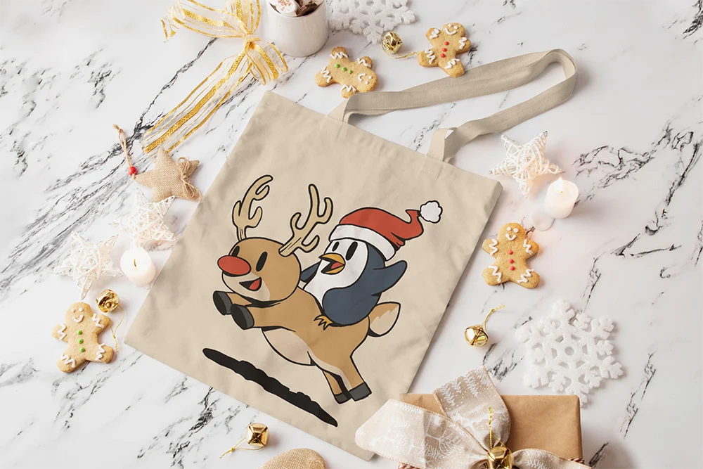 Bügelbild Pinguin reitet Rentier – lustiges Wintermotiv für Kinder Weihnachten kann so fröhlich sein! Dieses Bügelbild zeigt einen niedlichen Pinguin, der vergnügt auf einem Rentier reitet. Mit seinem fröhlichen Gesichtsausdruck und den liebevollen Details bringt das Motiv sofort gute Laune und winterliche Stimmung aufs Textil. Ein zuckersüßes Design, das Kinderherzen höher schlagen lässt.Ob als Highlight für festliche Shirts, kuschelige Hoodies oder Taschen – Pinguin und Rentier sind das perfekte Duo für für kleine Winterfans. Das Motiv vereint Tierliebe, Spaß und Weihnachtszauber und ist ideal für alle, die ein originelles Outfit für die Adventszeit suchen. Auch als Geschenk eine tolle Idee!Das Bügelbild ist hochwertig gedruckt, einfach auf Baumwollstoffe wie Shirts, Sweater, Hoodies, Stofftaschen oder Kissenbezüge aufzubringen und bleibt bei richtiger Pflege lange farbintensiv und formstabil. Ein langlebiger Textiltransfer, der jedes Kinderoutfit in ein fröhliches Winter-Highlight verwandelt.Du willst noch mehr Bügelbilder mit weihnachtlichem Feeling entdecken? Dann wirf einen Blick auf unsere Winter-Kollektion – und finde dein nächstes Lieblingsmotiv!