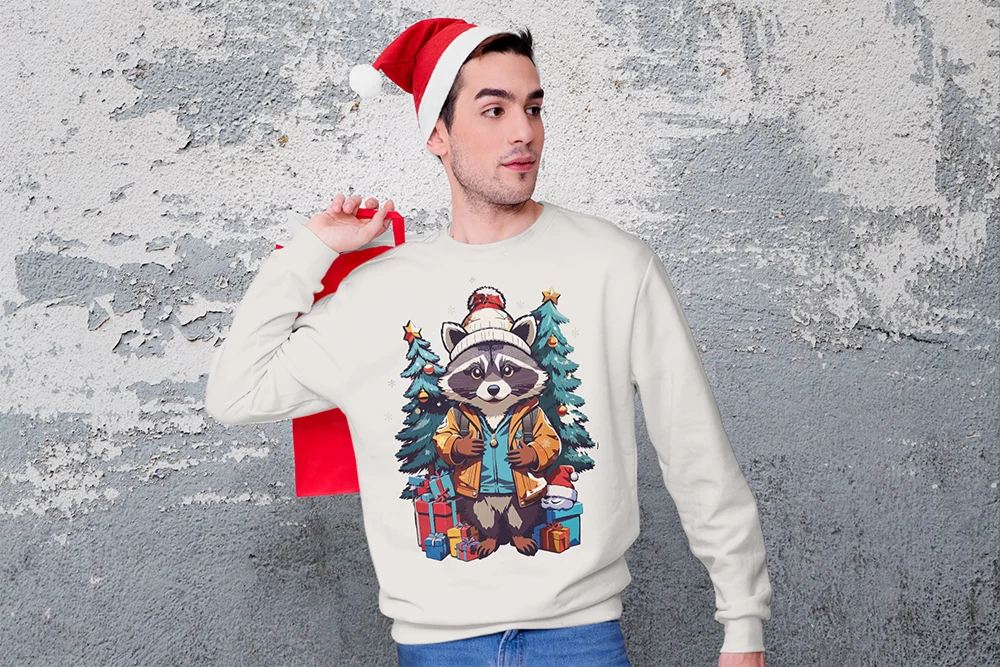 Bügelbild Weihnachts-Waschbär – süßes Wintermotiv mit Geschenken Festlich, flauschig und voller Charme. Dieses Bügelbild zeigt einen niedlichen Waschbären im Winteroutfit, der sich fröhlich zwischen Weihnachtsbäumen und Geschenken präsentiert. Mit Schal, Mütze und warmen Farben bringt er sofort Weihnachtsstimmung auf jedes Textil. Ein Motiv, das Tierliebe und Weihnachtsfreude vereint.Ob als süßes Detail auf Kinderkleidung, als stimmungsvoller Akzent auf Hoodies oder als Hingucker auf einer Stofftasche – der Weihnachts-Waschbär sorgt garantiert für gute Laune in der Adventszeit. Perfekt für DIY-Geschenke, festliche Outfits und kleine Tierfreunde, die Weihnachten noch ein bisschen magischer machen wollen.Das Bügelbild ist hochwertig gedruckt, leicht auf Baumwollstoffe wie Shirts, Sweater, Hoodies, Taschen oder Kissenbezüge aufzubringen und bleibt bei richtiger Pflege lange farbintensiv und formstabil. Ein langlebiger Textiltransfer, der jedes Outfit in ein fröhliches Winter-Unikat verwandelt.Du willst noch mehr Bügelbilder mit weihnachtlichem Feeling entdecken? Dann wirf einen Blick auf unsere Winter-Kollektion – und finde dein nächstes Lieblingsmotiv!