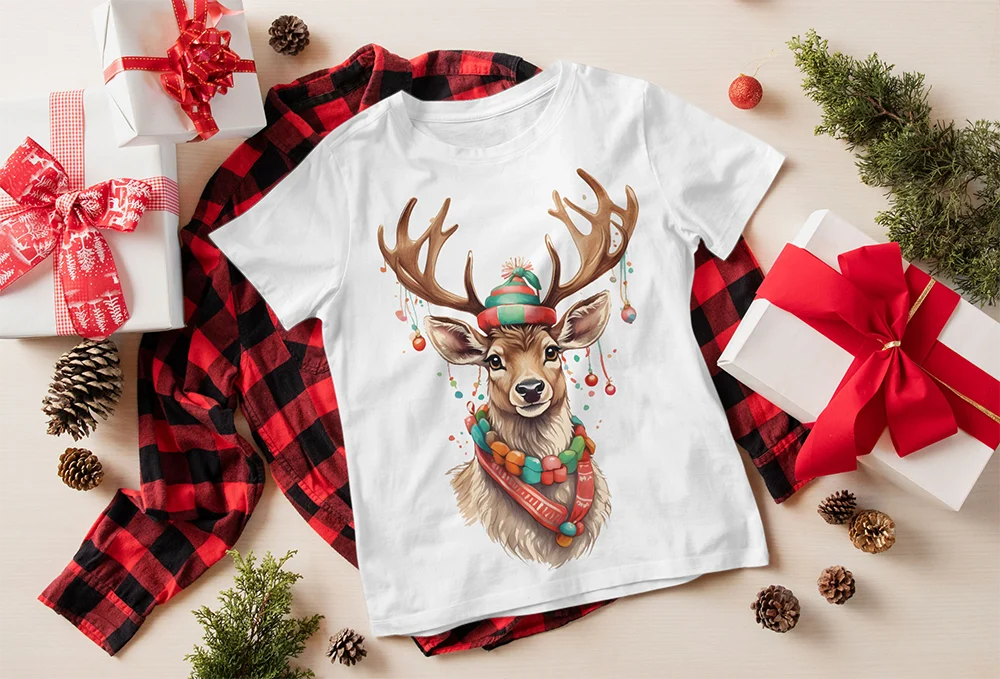 Bügelbild Weihnachts-Rentier – niedliches Wintermotiv mit roter Nase, Mütze & Schneeflocken Festlich, süß und voller Winterzauber. Dieses Bügelbild zeigt ein niedliches Rentier im Cartoon-Stil, das mit seiner roten Nase und einer roten Weihnachtsmütze sofort an die schönste Zeit des Jahres erinnert. Umgeben von zarten Schneeflocken strahlt es pure Freude und weihnachtliche Stimmung aus.Mit seinem freundlichen Blick und den ausgestreckten Pfoten wirkt das Rentier lebendig und charmant – perfekt für Kinder, Tierfreunde und alle, die die Adventszeit lieben. Ob auf Shirts, Hoodies oder Taschen – dieses Motiv bringt festliche Wärme und ein Lächeln in jedes Winter-Outfit.Das Bügelbild ist hochwertig gedruckt, lässt sich mühelos auf Baumwollstoffe wie Shirts, Sweater, Hoodies, Stofftaschen oder Kissenbezüge aufbringen und bleibt bei richtiger Pflege lange farbintensiv und formstabil. Ein langlebiger Textiltransfer, der Mode und Accessoires mit fröhlicher Weihnachtsstimmung bereichert.Du willst noch mehr Bügelbilder mit winterlichen und weihnachtlichen Motiven entdecken? Dann wirf einen Blick auf unsere Winter-Kollektion – und finde dein nächstes Lieblingsmotiv!