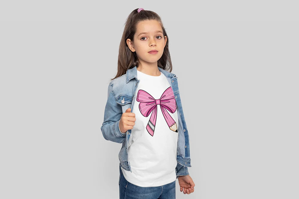 Bügelbild rosa Bleistift-Schleife – süßes Schulmotiv für Mädchen, Einschulung & kreative Outfits Zart, verspielt und voller Kreativität. Dieses Bügelbild zeigt eine rosa Schleife, deren Enden wie ein gespitzter Bleistift und ein Radiergummi gestaltet sind. Das Design bringt auf liebevolle Weise den Schulalltag mit einem verspielten Look zusammen – perfekt, um Kleidung und Accessoires einzigartig zu gestalten. Ein Motiv, das Lernen und Spaß verbindet.Ideal für Kinder-Shirts, Hoodies oder Stofftaschen – die rosa Bleistift-Schleife eignet sich wunderbar als Einschulungsgeschenk oder für kleine Künstlerinnen und Schulstarterinnen. Auch Lehrer*innen und DIY-Fans können mit diesem Motiv kreative Outfits oder Accessoires mit persönlichem Bezug gestalten.Das Bügelbild ist hochwertig gedruckt, lässt sich problemlos auf Baumwollstoffe wie Shirts, Sweater, Hoodies, Taschen oder Kissenbezüge aufbringen und bleibt bei richtiger Pflege lange farbenfroh und formstabil. Ein langlebiger Textiltransfer, der süße Outfits mit einem cleveren Schul-Detail abrundet.Du willst noch mehr Bügelbilder zum Thema Schule, Schulanfang und Einschulung entdecken? Dann wirf einen Blick auf unsere Schul-Kollektion – und finde dein nächstes Lieblingsmotiv!