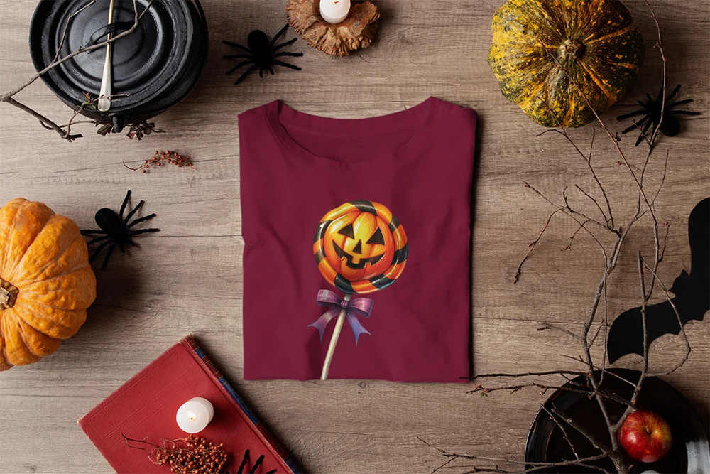 Bügelbild Halloween-Lolli – Süßigkeit in Orange & Lila mit Kürbis-Motiv für gruselige Outfits Süß, farbenfroh und voller Halloween-Flair. Dieses Bügelbild zeigt einen Halloween-Lolli in den kräftigen Farben Orange und Lila, eingehüllt in ein dekoratives Papier mit Kürbis-Motiv. Als passendes Gegenstück zum Halloween-Bonbon bringt er die perfekte Portion „Süßes oder Saures“ direkt aufs Textil. Ein Motiv, das sofort Gruselspaß vermittelt.Ob als Eyecatcher auf Shirts, als verspieltes Detail auf Hoodies oder als saisonales Highlight auf Taschen – der Halloween-Lolli ist perfekt für Kinder, Familien und alle, die bunte Halloween-Motive lieben. Besonders in Kombination mit dem Bonbon entsteht ein stimmiges Duo für kreative Outfits oder DIY-Geschenke.Das Bügelbild ist hochwertig gedruckt, lässt sich problemlos auf Baumwollstoffe wie Shirts, Sweater, Hoodies, Stofftaschen oder Kissenbezüge aufbringen und bleibt bei richtiger Pflege lange farbintensiv und formstabil. Ein langlebiger Textiltransfer, der deine Kleidung oder Accessoires in ein süß-gruseliges Highlight verwandelt.Du willst noch mehr Bügelbilder mit Hexen, Vampiren und dem Hauch von Apokalypse entdecken? Dann wirf einen Blick auf unsere Horror-Kollektion – und finde dein nächstes Lieblingsmotiv!