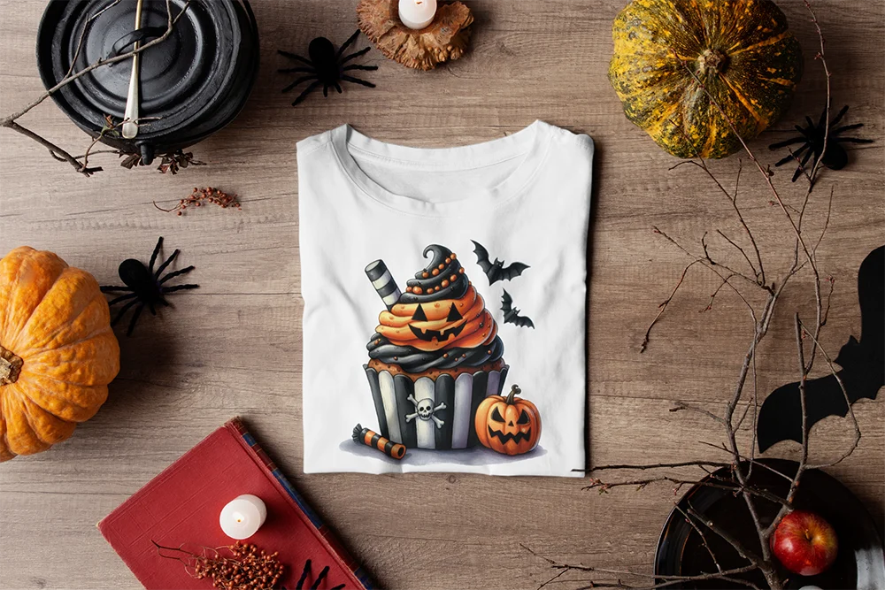 Bügelbild Halloween-Cupcake – süßes Motiv in Orange & Schwarz mit Kürbis- und Fledermaus-Deko für gruselige Outfits Gruselig lecker und richtig stylisch. Dieses Bügelbild zeigt einen Halloween-Cupcake in den typischen Farben Orange und Schwarz, verziert mit Kürbis- und Fledermaus-Deko. Mit seiner verspielten Gestaltung bringt er die perfekte Mischung aus Süße und Spuk auf dein Textil. Ein Motiv, das sofort für Halloween-Stimmung sorgt.Ob als witziger Hingucker auf Shirts, als süßes Detail auf Hoodies oder als origineller Akzent auf Taschen – der Halloween-Cupcake ist perfekt für Kinder, Partygänger und alle, die Halloween mit Humor und Kreativität feiern. Auch ideal als Ergänzung zu anderen Süßigkeiten- oder Party-Motiven.Das Bügelbild ist hochwertig gedruckt, leicht auf Baumwollstoffe wie Shirts, Sweater, Hoodies, Stofftaschen oder Kissenbezüge aufzubringen und bleibt bei richtiger Pflege lange farbintensiv und formstabil. Ein langlebiger Textiltransfer, der jedem Outfit einen süßen, aber gruseligen Touch verleiht.Du willst noch mehr Bügelbilder mit Hexen, Vampiren und dem Hauch von Apokalypse entdecken? Dann wirf einen Blick auf unsere Horror-Kollektion – und finde dein nächstes Lieblingsmotiv!