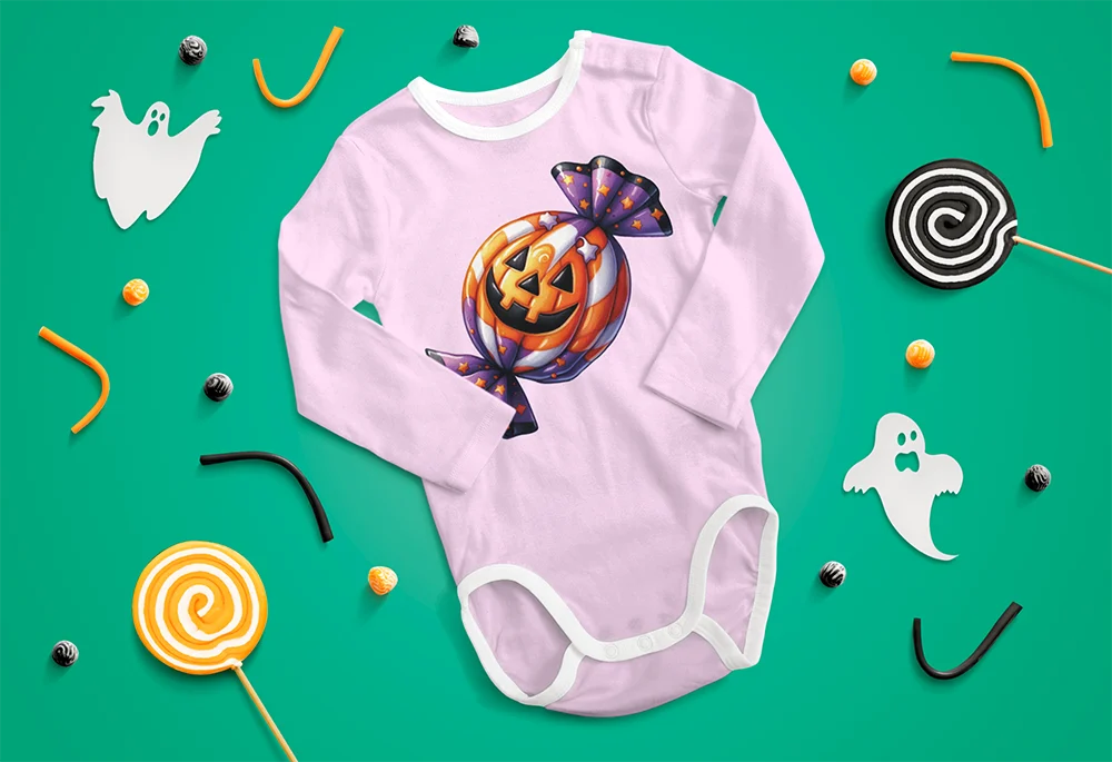 Bügelbild Halloween-Bonbon – süßes Motiv mit Kürbis-Papier in Orange & Lila für Shirts, Hoodies & Taschen Süß, bunt und voller Halloween-Charme. Dieses Bügelbild zeigt ein Bonbon, eingehüllt in ein auffälliges Papier mit Kürbis-Motiv. Die kräftigen Farben in Orange und Lila machen das Design zu einem echten Hingucker und verbreiten sofort die passende Gruselstimmung. Ein Motiv, das Süßes oder Saures perfekt auf den Punkt bringt.Ob als niedlicher Akzent auf Shirts, als verspieltes Detail auf Hoodies oder als saisonales Extra auf Taschen – das Halloween-Bonbon ist ideal für Kinder, Partygänger und alle, die zu Halloween ein süßes Statement setzen möchten. Auch perfekt als Ergänzung zu anderen gruseligen DIY-Motiven.Das Bügelbild ist hochwertig gedruckt, lässt sich einfach auf Baumwollstoffe wie Shirts, Sweater, Hoodies, Stofftaschen oder Kissenbezüge aufbringen und bleibt bei richtiger Pflege lange farbintensiv und formstabil. Ein langlebiger Textiltransfer, der deinen Outfits einen süßen und farbenfrohen Halloween-Look verleiht.Du willst noch mehr Bügelbilder mit Hexen, Vampiren und dem Hauch von Apokalypse entdecken? Dann wirf einen Blick auf unsere Horror-Kollektion – und finde dein nächstes Lieblingsmotiv!