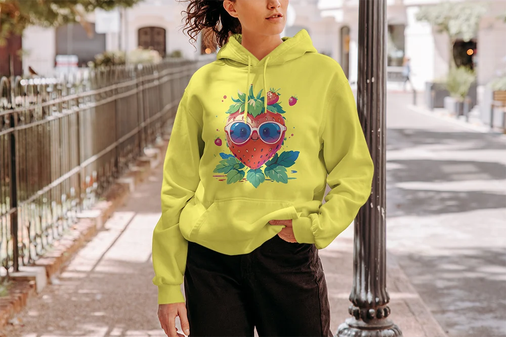 Bügelbild coole Erdbeere – sommerliches Cartoon-Motiv mit Sonnenbrille & guter Laune Fruchtig, frech und voller Sommer-Feeling. Dieses Bügelbild zeigt eine große, knallrote Erdbeere im Cartoon-Stil, die mit einer lässigen Sonnenbrille mit blauen Gläsern richtig cool wirkt. Umgeben von grünen Blättern und kleinen Erdbeeren strahlt das Motiv pure Frische aus. Ein Design, das gute Laune und trendigen Humor perfekt verbindet.Die kräftigen Farben und der lässige Gesichtsausdruck machen die Erdbeere zu einem echten Hingucker. Ideal für sommerliche Outfits, Kinder- und Teenager-Looks oder als witziges Detail auf Taschen. Dieses Motiv bringt Spaß, Frische und eine Extraportion Coolness auf jedes Textil.Das Bügelbild ist hochwertig gedruckt, lässt sich leicht auf Baumwollstoffe wie Shirts, Sweater, Hoodies, Stofftaschen oder Kissenbezüge aufbringen und bleibt bei richtiger Pflege lange farbintensiv und formstabil. Ein langlebiger Textiltransfer, der deinem Outfit sommerliche Fruchtigkeit und Coolness verleiht.Du willst noch mehr Bügelbilder mit fruchtigem Obst und knackigem Gemüse entdecken? Dann wirf einen Blick auf unsere Obst- und Gemüse-Kollektion – und finde dein nächstes Lieblingsmotiv!