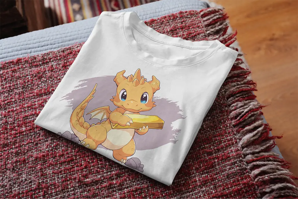Kleiner Goldhüter – niedliches Drachen-Bügelbild mit Schatz-Motiv Dieser kleine goldene Drache ist nicht nur süß anzusehen, sondern auch ein stolzer Hüter seines glänzenden Schatzes. Mit festem Griff hält er einen großen Goldbarren in seinen Klauen – bereit, ihn mit aller Kraft zu beschützen. Das Bügelbild vereint Fantasie, Stärke und Niedlichkeit auf besondere Weise und verleiht deiner Kleidung einen Hauch von magischem Glanz.Ob auf einem Kinder-Shirt, einem Hoodie oder einem Turnbeutel – dieser kleine Drache passt perfekt zu allen, die Mythologie, Fantasiewesen und verspielte Designs lieben. Sein goldener Look wirkt besonders gut auf dunklen oder farbintensiven Textilien und sorgt für einen echten Hingucker in Schule, Alltag oder Freizeit. Ideal für kleine Abenteurer*innen und große Drachenfans – dieses Bügelbild bringt Magie, Schutz und ein Lächeln in deinen Kleiderschrank. Der Golddrache symbolisiert Reichtum, Stärke, Wachsamkeit und eine treue Seele, die bereit ist, alles zu geben, um das Wertvollste zu bewahren.Du willst noch mehr niedliche Bügelbilder mit Drachen und anderen mystischen Wesen entdecken? Dann wirf einen Blick auf unsere Fantasy-Kollektion – und finde dein nächstes Lieblingsmotiv!