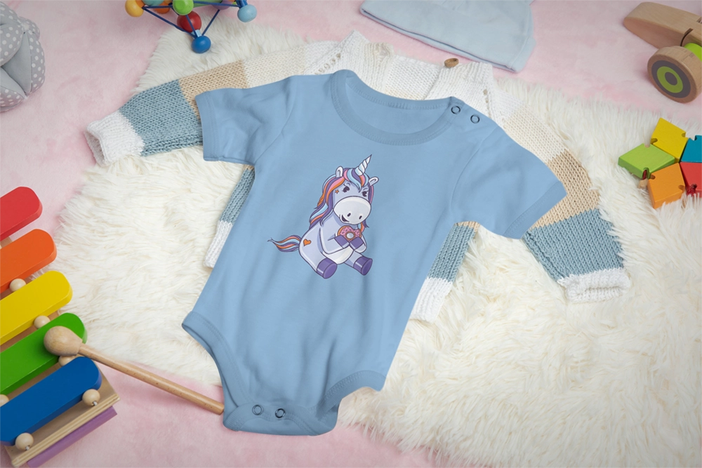 Einhorn-Bügelbild in Pastellfarben – Süßes Design mit Donut und Zauber Wenn du Einhörner liebst und es gerne farbenfroh und verspielt magst, ist dieses Bügelbild genau dein Ding! Das Motiv zeigt ein niedliches Einhorn in zarten Pastellfarben, das liebevoll einen großen Donut umarmt. Ob als verspielter Akzent auf deinem Shirt oder als süße Verzierung für Tasche oder Rucksack – dieses Design bringt sofort gute Laune und ein bisschen Magie in deinen Alltag.Die Kombination aus Einhorn, süßem Gebäck und zarter Farbwelt macht dieses Motiv zum echten Hingucker – vor allem für Kinder, Teens und alle, die sich den Zauber der Fantasie bewahrt haben. Es eignet sich perfekt als Geschenk oder zum individuellen Gestalten von Kleidung, Schultüten oder Accessoires. Mit seinen liebevollen Details ist es mehr als nur ein Aufbügler – es ist ein Ausdruck von Lebensfreude, Verspieltheit und Kreativität.Dank hochwertiger Verarbeitung lässt sich das Bügelbild kinderleicht aufbringen und überzeugt durch lange Haltbarkeit – selbst nach vielen Waschgängen. Verleihe deinem Look einen süßen Hauch von Magie und bring mit diesem Einhorn-Bügelbild ein kleines Kunstwerk auf deine Lieblingsstücke!Du willst noch mehr Bügelbilder mit Einhörnern und anderen fabelhaften Wesen entdecken? Dann wirf einen Blick auf unsere Fantasy-Kollektion – und finde dein nächstes Lieblingsmotiv!