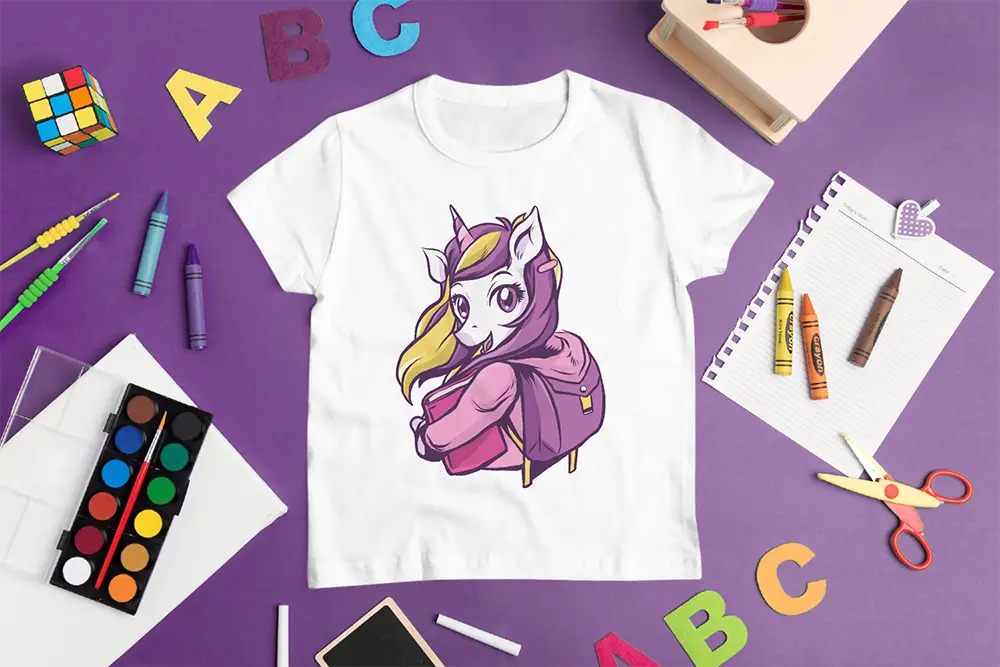 Bügelbild zur Einschulung – Einhorn mit Schulrucksack für einen märchenhaften Schulstart Der große Tag steht bevor – der Schulanfang! Und was könnte diesen Moment noch magischer machen als ein fröhliches Einhorn mit einer lilafarbenen Mähne, einem Schulrucksack auf dem Rücken und einem Buch unter dem Arm? Dieses liebevoll gestaltete Bügelbild bringt alles mit, was ein besonderes Einschulungs-Outfit braucht: Märchenhaftes Design, fröhliche Farben und eine Prise Lernfreude.Ob auf dem T-Shirt für den ersten Unterrichtstag, dem Turnbeutel oder der Schultüte – dieses Einhorn-Bügelbild wird zum treuen Begleiter in der neuen Klasse. Es eignet sich perfekt für Kinder, die Einhörner lieben, und Eltern, die mit einem kleinen Detail ein großes Zeichen setzen möchten. Dabei funktioniert das Motiv auf hellen wie dunklen Textilien und lässt sich einfach aufbügeln.Das Design vereint Lernen, Fantasie und Mut – genau das, was Kinder am Anfang ihrer Schulzeit brauchen. Ein bezauberndes Motiv nicht nur für die Einschulung, sondern auch für den Kindergarten, die Vorschule oder einfach als Geschenk zur Erinnerung an den besonderen Tag. Mit diesem Einhorn im Gepäck kann das Abenteuer Schule beginnen!Du willst noch mehr Bügelbilder mit Einhorn-Motiven entdecken? Dann wirf einen Blick auf unsere Fantasy-Kollektion – und finde dein nächstes Lieblingsmotiv!