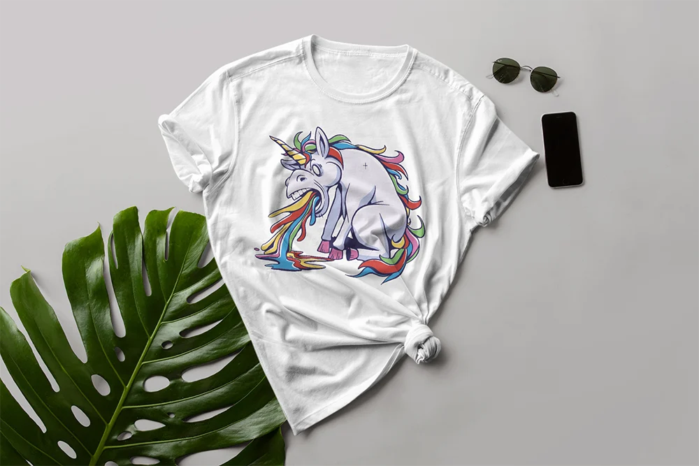Bügelbild Einhorn mit Regenbogen – lustiges Fantasy-Motiv Magisch, bunt und ein kleines bisschen verrückt. Dieses Bügelbild zeigt ein weißes Einhorn, das einen leuchtenden Regenbogen ausspuckt – ein Motiv voller Humor, Fantasie und Farbe. Mit seinem cartoonartigen Look und den kräftigen Regenbogenstreifen bringt es sofort gute Laune auf jedes Textil. Ein absoluter Eyecatcher für Fantasy-Fans mit Spaß am Außergewöhnlichen.Ob als witziges Highlight auf einem Hoodie, als bunter Akzent auf einer Tasche oder als originelles Geschenk für Einhornliebhaber*innen – dieses Design ist perfekt für alle, die es verspielt und auffällig mögen. Es kombiniert das mystische Einhorn mit einem humorvollen Twist und sorgt garantiert für Schmunzeln und staunende Blicke.Das Bügelbild ist hochwertig gedruckt und eignet sich ideal für Baumwollstoffe wie Shirts, Sweater, Hoodies, Stofftaschen oder Kissenbezüge. Es lässt sich kinderleicht aufbügeln, bleibt bei richtiger Pflege lange farbintensiv und detailreich und macht jedes Textil zu einem einzigartigen Statement-Piece.Du willst noch mehr Bügelbilder mit Einhörnern und anderen fabelhaften Wesen entdecken? Dann wirf einen Blick auf unsere Fantasy-Kollektion – und finde dein nächstes Lieblingsmotiv!