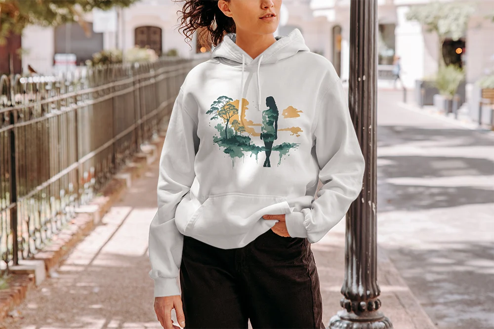 Bügelbild Silhouette & Landschaft – Watercolor-Motiv in warmen Tönen Künstlerisch und stimmungsvoll. Dieses Bügelbild zeigt die Silhouette einer Frau, die sich vor einer warmen, afrikanisch inspirierten Landschaft erhebt. Im Watercolor-Look gestaltet, mit weichen Farbverläufen und intensiven Kontrasten, entsteht ein Motiv, das Ruhe, Stärke und Natürlichkeit ausstrahlt. Ein außergewöhnliches Design, das Kultur- und Naturmotive harmonisch verbindet.Ob als Blickfang auf Shirts, als stilvolles Detail auf Hoodies oder als dekoratives Highlight auf Taschen – dieses Landschafts- und Silhouetten-Motiv ist ein vielseitiger Eyecatcher. Es eignet sich perfekt für Menschen, die künstlerische Illustrationen lieben und ihre Outfits mit einem Hauch Fernweh und Eleganz versehen möchten.Das Bügelbild ist hochwertig gedruckt, lässt sich einfach auf Baumwollstoffe wie Shirts, Sweater, Hoodies, Stofftaschen oder Kissenbezüge aufbringen und bleibt bei richtiger Pflege lange farbintensiv und formstabil. Ein kunstvolles Textilmotiv, das deinem Look eine individuelle, kreative Note verleiht.Du willst noch mehr Bügelbilder rund um die Savanne und Afrika entdecken? Dann wirf einen Blick auf unsere Safari-Kollektion – und finde dein nächstes Lieblingsmotiv!