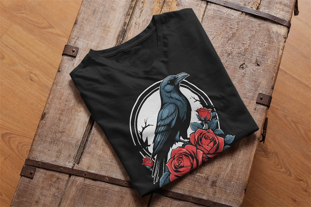 Bügelbild Rabe mit Rosen – mystisches Tiermotiv mit floralen Details Dunkel, elegant und voller Symbolik. Dieses Bügelbild zeigt einen majestätischen Raben, der von Rosenblüten umgeben ist. Die Verbindung aus dem mystischen Vogel und den detailreichen Blumen verleiht dem Motiv eine geheimnisvolle, zugleich edle Ausstrahlung. Ein Design, das Natur, Symbolkraft und künstlerische Eleganz vereint.Ob als starker Akzent auf Shirts, als stilvolles Detail auf Hoodies oder als außergewöhnlicher Hingucker auf Taschen – der Rabe mit Rosen ist perfekt für alle, die es düster, aber zugleich romantisch mögen. Er passt sowohl in Gothic- und Fantasy-Looks als auch in kreative DIY-Projekte mit künstlerischem Flair.Das Bügelbild ist hochwertig gedruckt und ideal für Baumwollstoffe wie Shirts, Sweater, Hoodies, Stofftaschen oder Kissenbezüge geeignet. Es lässt sich kinderleicht aufbügeln und bleibt bei richtiger Pflege lange farbintensiv und detailreich. Ein langlebiger Textiltransfer für alle, die Mystik und Natur auf einzigartige Weise kombinieren wollen.Du willst noch mehr düstere und geheimnisvolle Bügelbilder entdecken? Dann wirf einen Blick auf unsere Grusel-Kollektion – und finde dein nächstes Lieblingsmotiv!