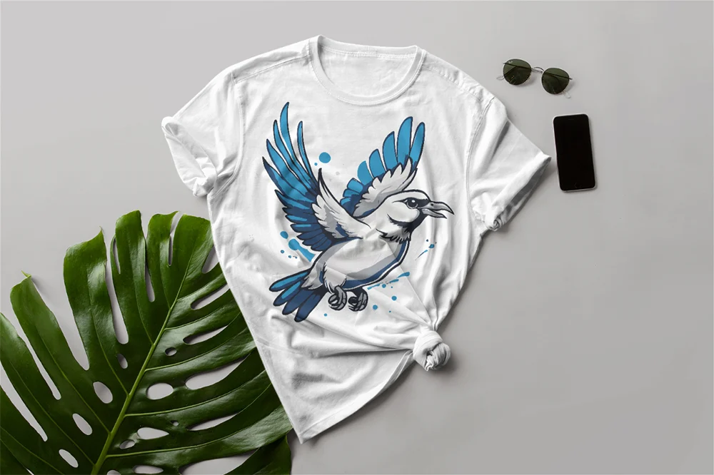 Fliegender Vogel mit blauen Federn // Bügelbild