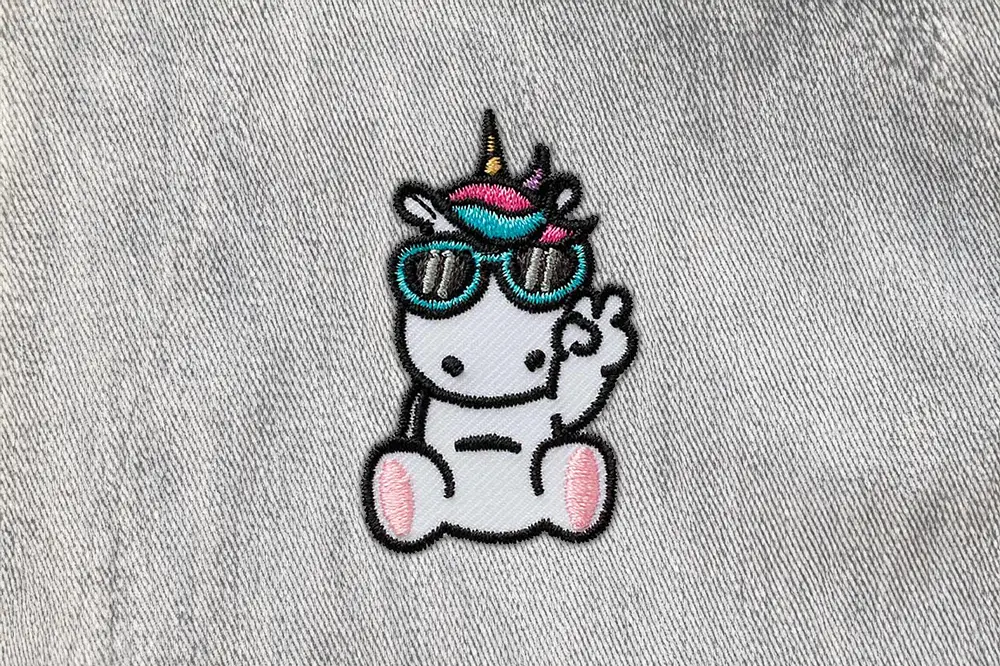 Cooles Einhorn mit Sonnenbrille – Dein stylischer Patch zum Aufbügeln Dieses coole Einhorn-Bügelbild mit pink-blauer Mähne und Sonnenbrille hebt nicht nur die Hand zum Victory-Zeichen, sondern auch deinen Style auf ein neues Level! Der weiß gestickte Einhorn Patch zum Aufbügeln bringt fröhliche Farben, Glitzer-Charme und jede Menge Persönlichkeit auf deine Kleidung, Taschen, Jacken oder Accessoires. Ob für Kinder, Jugendliche oder Erwachsene – dieser witzige Einhorn-Aufnäher ist ein echter Hingucker für alle, die Spaß an kreativer Mode haben.Das Bügelpatch Einhorn mit Victory-Zeichen ist hochwertig verarbeitet, langlebig und leicht anzubringen. Perfekt, um kleine Risse zu kaschieren oder langweilige Teile aufzuwerten – und das mit Stil! Egal ob im Alltag, auf Festivals oder beim Basteln: Mit diesem stylischen Einhorn-Patch mit Sonnenbrille zeigst du ganz klar, dass du Mode mit einem Augenzwinkern liebst.Warum dieses Patch?✔ Perfekt zum Flicken von Löchern & Rissen✔ Kinderleicht aufzubügeln – in wenigen Minuten fertig!✔ Robust & waschfest✔ Magisches Design – macht schlichte oder beschädigte Kleidung zum echten Hingucker!So macht Flicken Spaß! Jetzt den stylisch-coolen Einhorn-Aufbügler sichern und kaputte Hosen in Lieblingsstücke verwandeln.Größe des Bügelbildes:3.5 cm x 3.3 cmMaterial:60% Polyester, 40% ViskoseBei diesem Produkt handelt es sich um ein hochwertig gesticktes Bügelbild/Patch. Verschönere und individualisiere deine Kleidung oder Taschen. Auch zum Kaschieren von kleinen Löchern in Hosen etc. sind die Patches bestens geeignet.Du willst noch mehr Patches und Aufnäher entdecken? Dann stöber weiter durch unsere Patches – und finde dein nächstes Lieblingsmotiv!