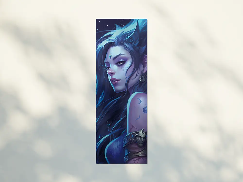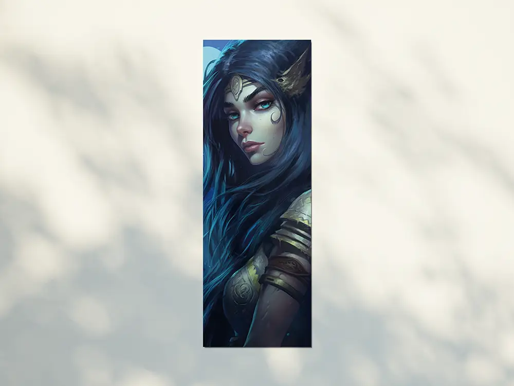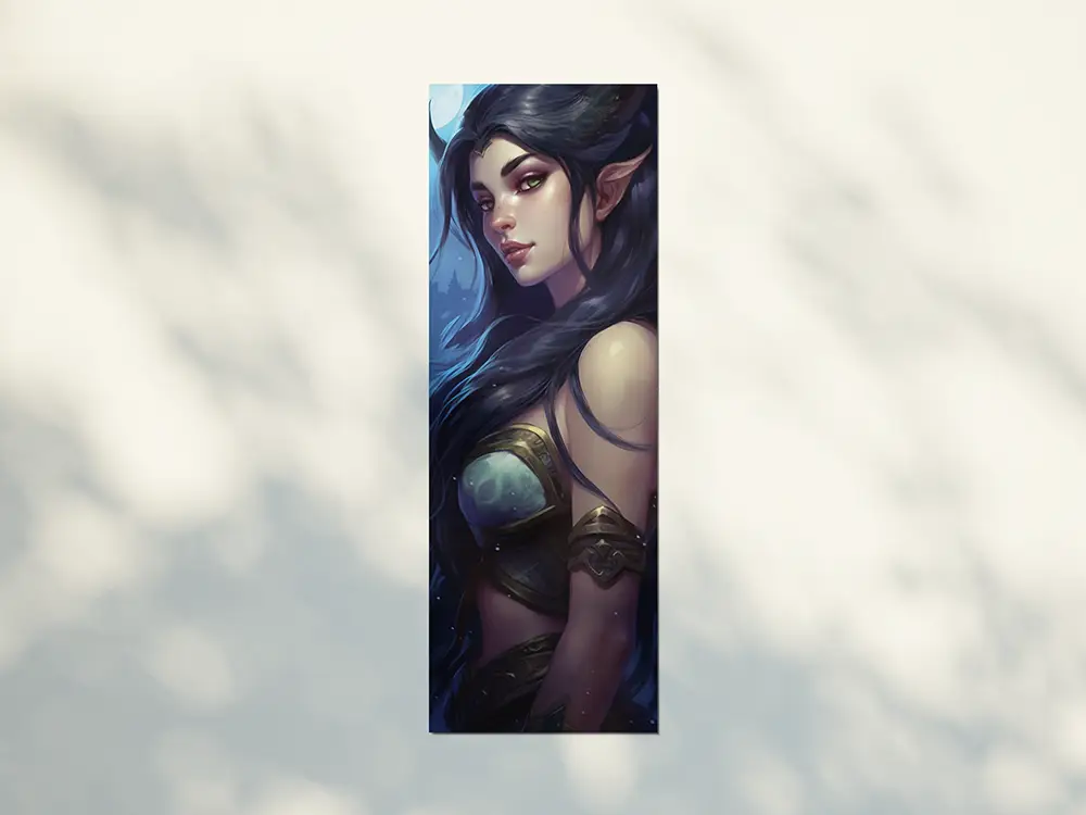 Lesezeichen mit einer weiblichen Nachtelfe in RüstungTauche ein in fantastische Welten – mit diesem detailreich gestalteten Fantasy-Lesezeichen mit einer mächtigen Nachtelfe in Rüstung. Dieses stilvolle Accessoire ist ideal für alle Bücherliebhaber, Rollenspiel-Fans und Leser*innen von Fantasy-Romanen, die sich ein besonderes Lesezeichen wünschen, das mehr ist als nur eine Markierung.Das beidseitig bedruckte Lesezeichen überzeugt durch seine brillante Farbgebung und den hochwertigen Druck auf glänzendem 300g-Papier. Mit einer praktischen Größe von ca. 5,1 x 14,8 cm passt es perfekt in Taschenbücher, Hardcover oder Notizbücher. Ob als Geschenk für Fantasy-Fans, als Sammelstück oder als täglicher Begleiter durch epische Geschichten – dieses magische Lesezeichen ist ein echter Blickfang für jedes Bücherregal und jeden Lesemoment.》Jedes Lesezeichen ist beidseitig mit dem selben Motiv bedruckt.》Größe: ca. 5,1cm x 14,8cm》300g starkes glänzendes Papier