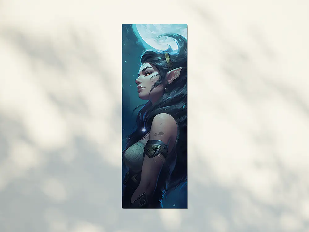 Elegantes Fantasy-Lesezeichen mit Nachtelfe im MondscheinDieses kunstvoll gestaltete Lesezeichen mit Nachtelfe ist genau das Richtige für alle, die beim Lesen Wert auf Stil und Fantasie legen. Die mystische Elfenkriegerin verleiht jedem Buch eine besondere Note und macht das Umblättern zu einem kleinen Abenteuer.Gefertigt aus stabilem, glänzendem 300g-Bilderdruckpapier und beidseitig mit dem gleichen Motiv bedruckt, ist das Lesezeichen nicht nur praktisch, sondern auch ein echtes Highlight für Fantasy-Fans. Mit der handlichen Größe von ca. 5,1 x 14,8 cm eignet es sich ideal für Romane, Notizbücher oder Journals – und ist ein wundervolles Geschenk für Leseratten, Rollenspieler oder Elfenliebhaber.》Jedes Lesezeichen ist beidseitig mit dem selben Motiv bedruckt.》Größe: ca. 5,1cm x 14,8cm》300g starkes glänzendes Papier